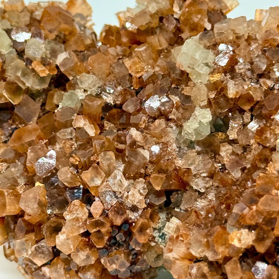 Elle se présente souvent sous forme d’agrégats rayonnants ou en « étoiles » brun miel, créés par l’assemblage harmonieux de dizaines de petits cristaux en fuseaux. -